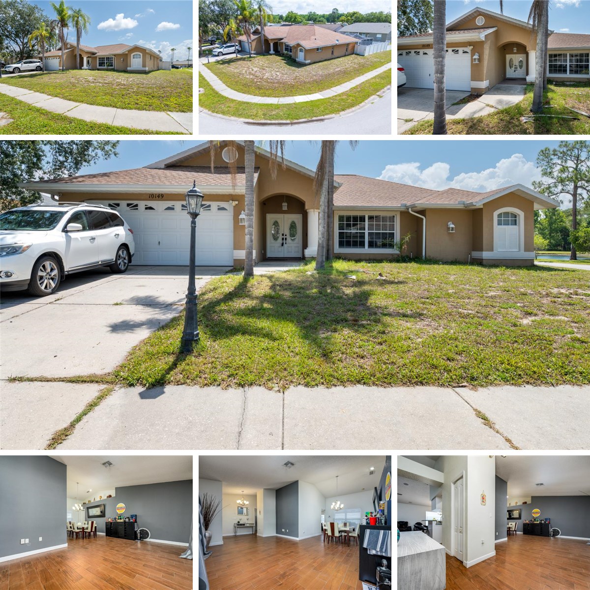 Welcome to Briarwoods, Hudson, Florida! This beautiful 3-bedroom, 2-bathroom pool home with a den and 2-car garage offers over 2,000 square feet of spacious living. Located just minutes from the Gulf of Mexico and Hudson Beach, this property combines comfort, style, and convenience. The home features a bright, open layout with high ceilings, a large family room, and formal living and dining spaces. The updated kitchen includes stainless steel appliances, stone countertops, and plenty of cabinet space—perfect for everyday living and entertaining. Elegant wood-look ceramic tile flooring runs throughout the home, creating a modern and welcoming feel. Enjoy Florida living with a covered lanai that includes a built-in wet bar, sink, BBQ set, and mini-fridge—an ideal setting for gatherings by the pool. The oversized corner lot offers ample yard space for gardening, outdoor activities, or relaxing in a peaceful setting. Additional highlights include a newer A/C unit, abundant natural light, and a location in a quiet, well-maintained neighborhood. Best of all, the property is located in a non-flood zone, providing peace of mind and protection from rising insurance costs. Close to great schools, shopping, dining, and recreation, this home is move-in ready and waiting for you. Schedule your private showing today!